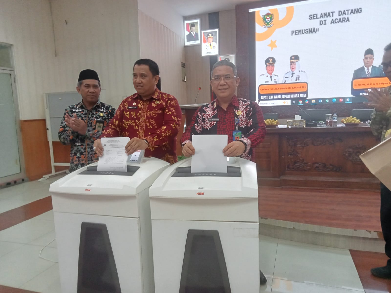 Pemusnahan tersebut berlangsung pada Kamis, 11 September 2025, di Gedung Bappeda Muara Enim. Dengan menggunakan dua unit mesin pencacah, tumpukan arsip dari delapan Organisasi Perangkat Daerah (OPD), kantor kecamatan, hingga arsip Sekretariat Daerah (Setda) Muara Enim, dilumat habis hingga tidak lagi menyisakan bentuk.
