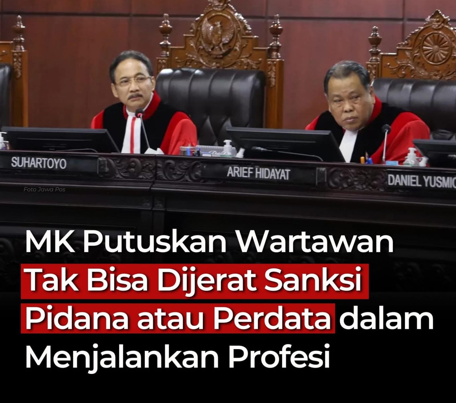 • Wartawan Tidak Bisa Langsung Dipidana/Digugat Perdata: MK menegaskan bahwa wartawan tidak dapat langsung dijerat sanksi pidana maupun perdata atas karya jurnalistik yang dihasilkan.