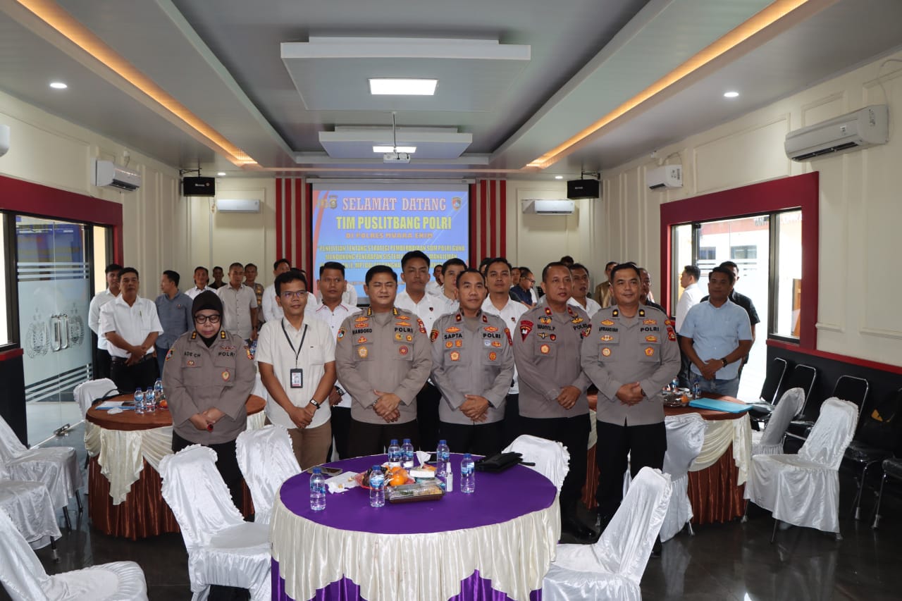 Wakapolres Kompol Sapta Eka Yanto, SH, MSI membuka kegiatan dengan menyampaikan apresiasi dan ucapan selamat datang kepada tim Puslitbang Polri. Ia menegaskan pentingnya peran SDM Personil dalam mendukung efektivitas E-MP sebagai sistem manajemen penyidikan berbasis elektronik.