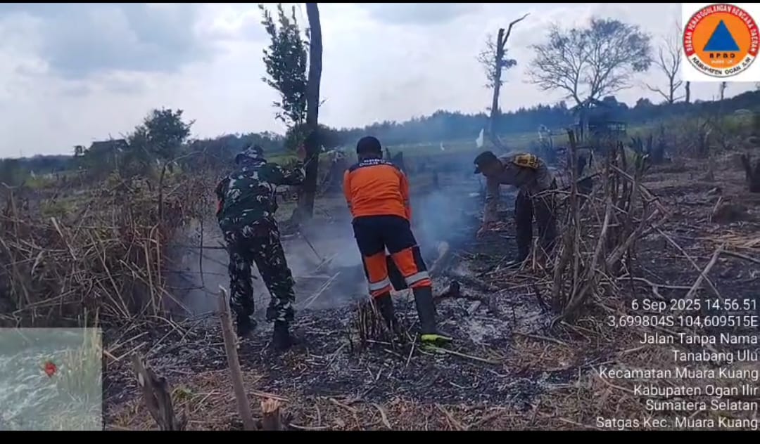 Dan untuk menindaklanjuti Laporan dari Satgas Patroli Udara BPBD Sumsel.Personil Polsek Muara Kuang, koramil muara kuang dan BPBD Ogan Ilir. Padamkan lahan karhutlah di Desa Tanabang Ulu Kecamatan Muara Kuang Kabupaten Ogan ilir. 1/4 Hektar lahan terbakar.