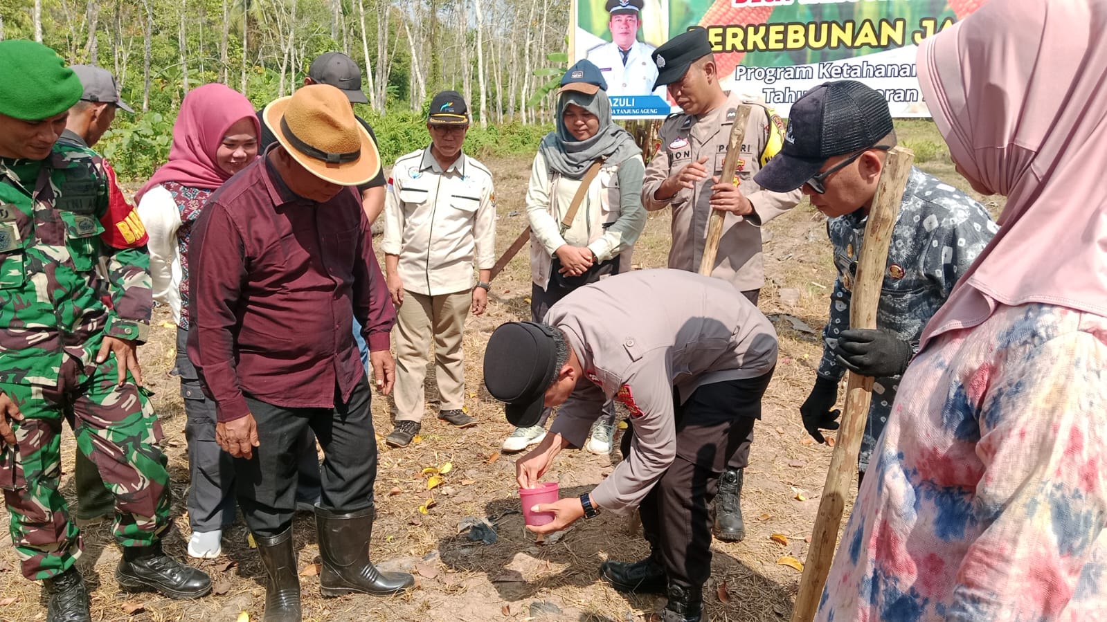 POLSEK INDRALAYA BERSAMA UNSUR PEMERINTAH KECAMATAN INDRALAYA LAKSANAKAN PROGRAM KETAHANAN PANGAN MELALUI PENANAMAN JAGUNG