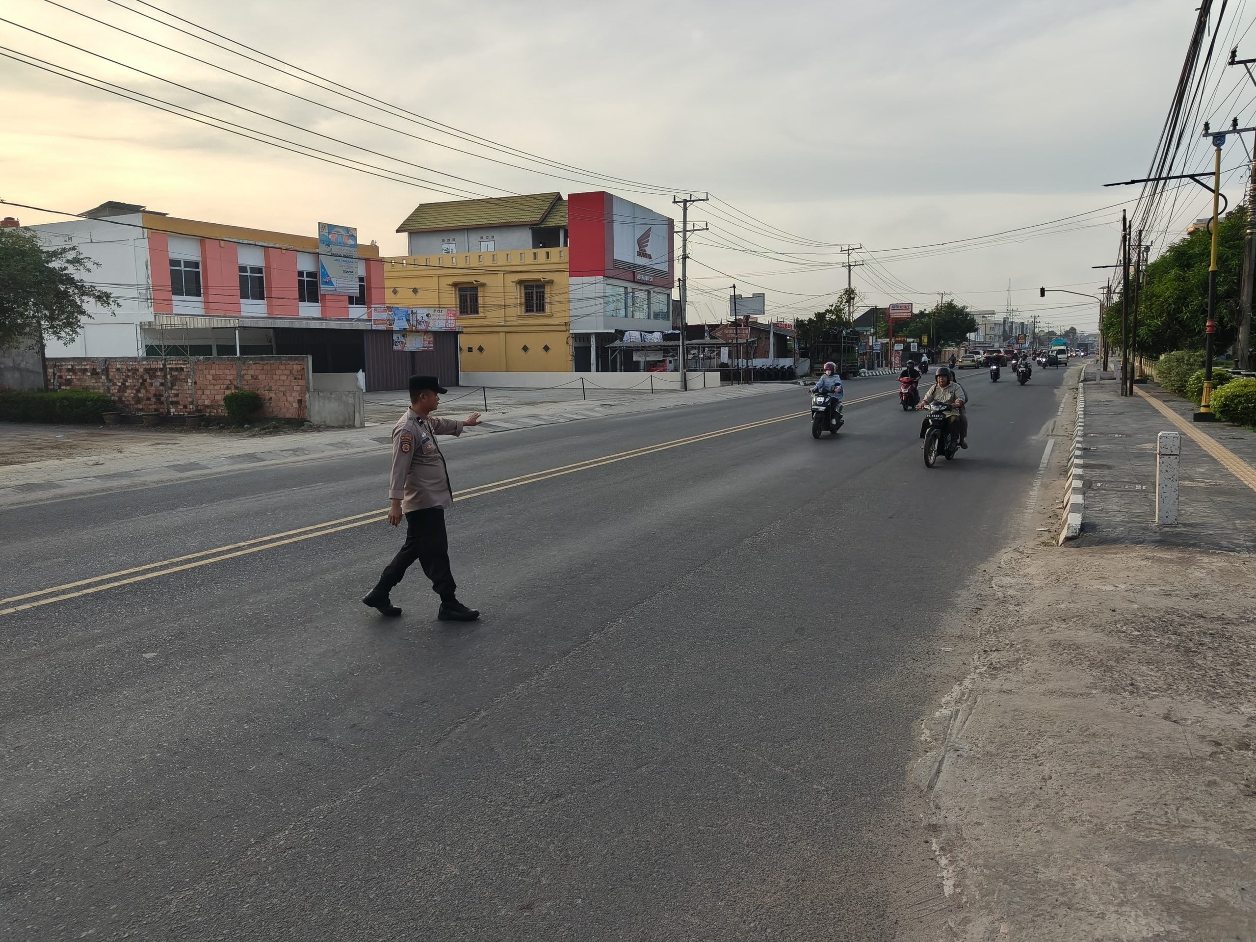 Personel Polsek Indralaya secara aktif melakukan pengaturan arus lalu lintas guna mencegah terjadinya kemacetan dan potensi kecelakaan lalu lintas. Selain itu, anggota kepolisian juga membantu para pelajar dan masyarakat saat menyeberang jalan, sehingga tercipta situasi yang aman dan tertib.