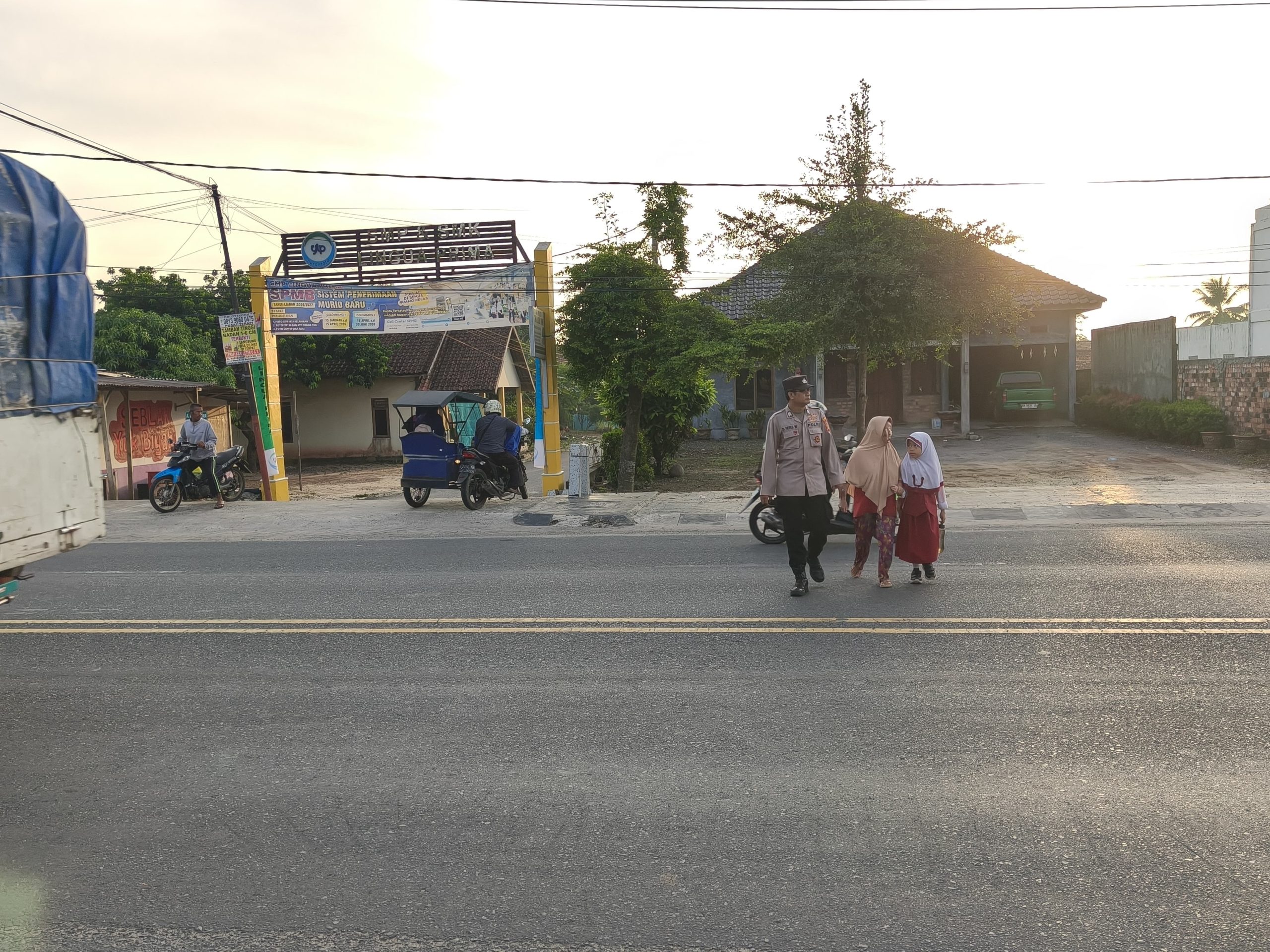Strong Point Pagi, Polsek Indralaya Berikan Rasa Aman bagi Pelajar dan Pengguna Jalan